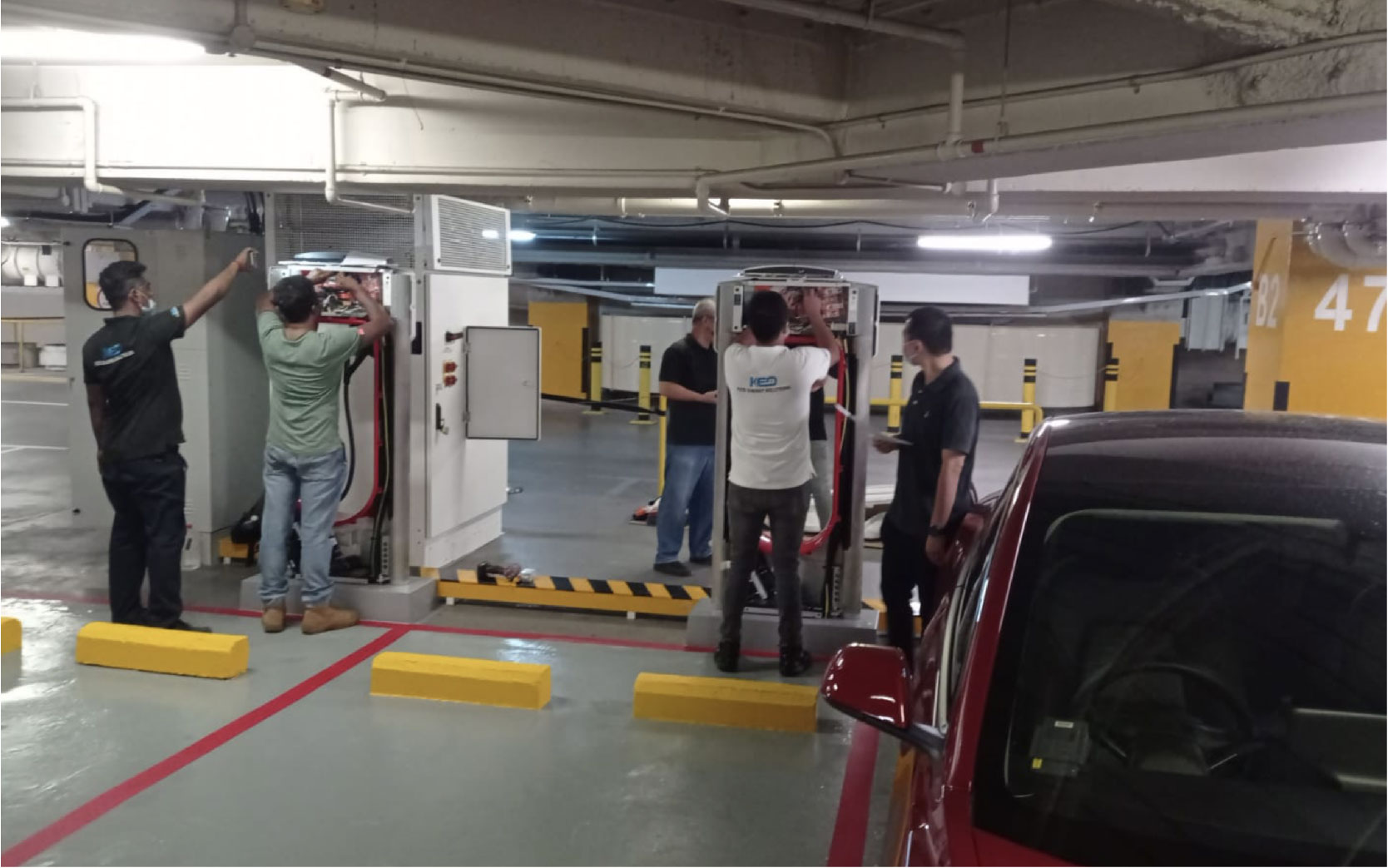 Nevertheless, our team of experts completed the installation — in record time no less— due to our strong electrical engineering background. Overall, we successfully carried out a full turnkey project that covered all ground and cabling works, as well as installing charge points at designated parking lots. The well completed project has received good compliments from Tesla in which it was used as a showcase to other vendors.